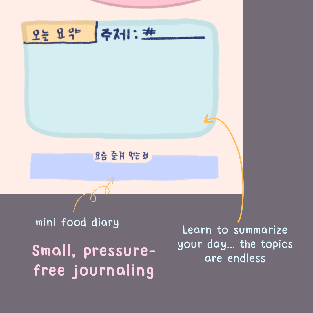 This ephemeral journal notepad is a great way to journal in Korean without a big energy or time investment. It’s simple, straight to the point, and has topic points that often come out in everyday conversations. It can also serve (while using it, you will find out soon) as a warm-up to a more in-depth writing session.